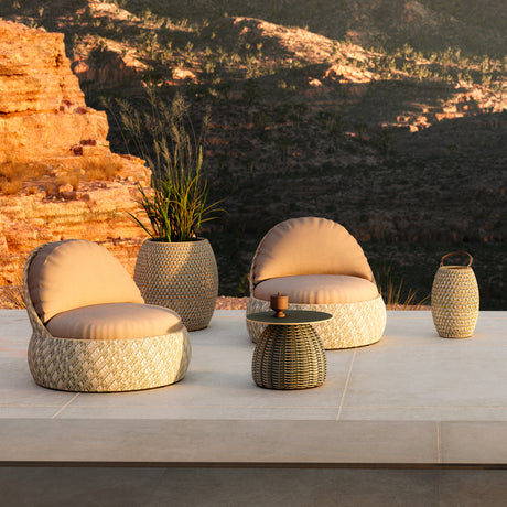 Die DEDON DALA Kollektion vereint handwerkliche Präzision mit Leichtigkeit im Ausdruck. Geflochten aus einer eigens entwickelten, recycelten Faser, entstehen Möbelstücke, die robust und zugleich sinnlich erfahrbar sind. Runde Silhouetten, intensive Farben und eine markante Oberflächenstruktur machen DALA zu einer Kollektion, die Atmosphäre schafft – drinnen wie draußen.