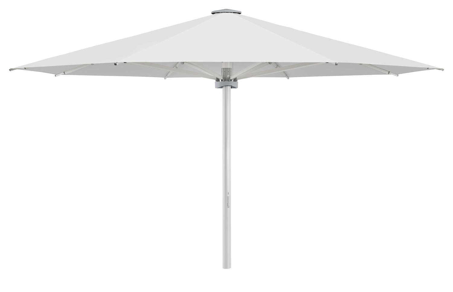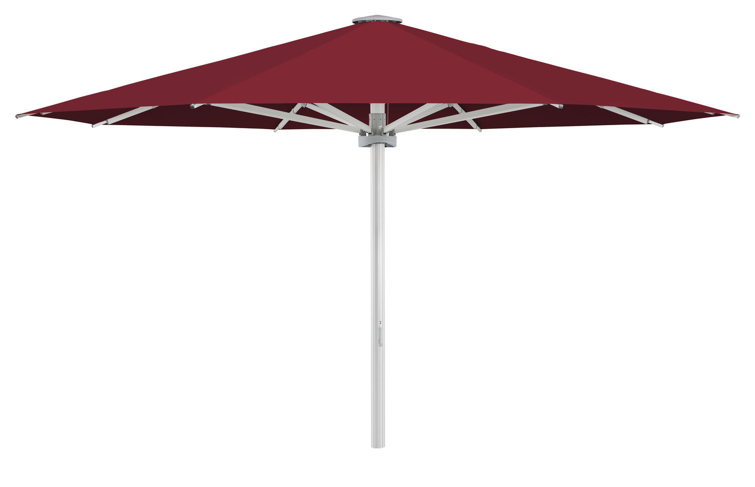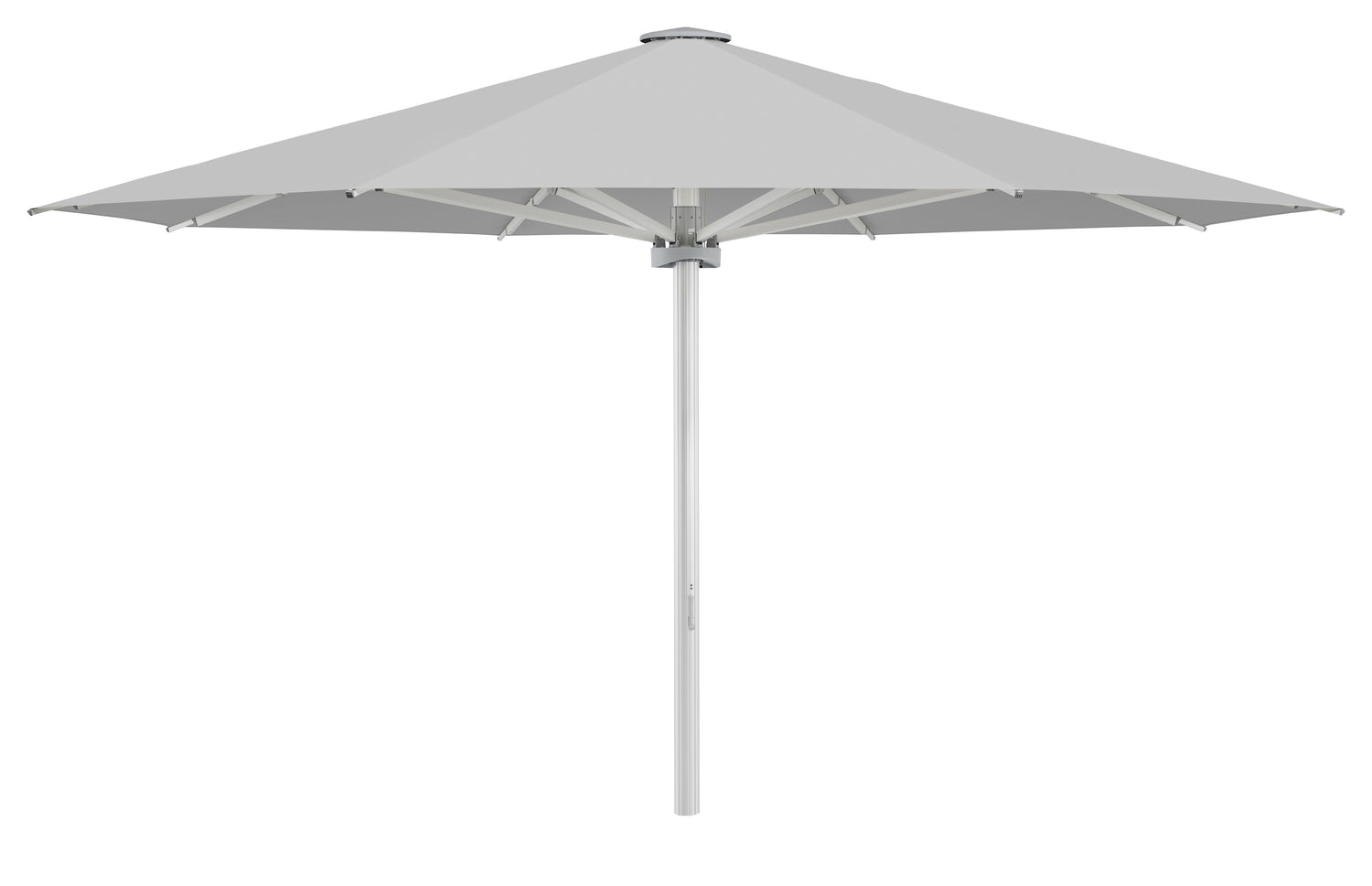 Mit 16 Standardversionen, diversen Stofffarben, Gestellvarianten und Zubehör passt sich der Grossschirm jedem Einsatzort an.