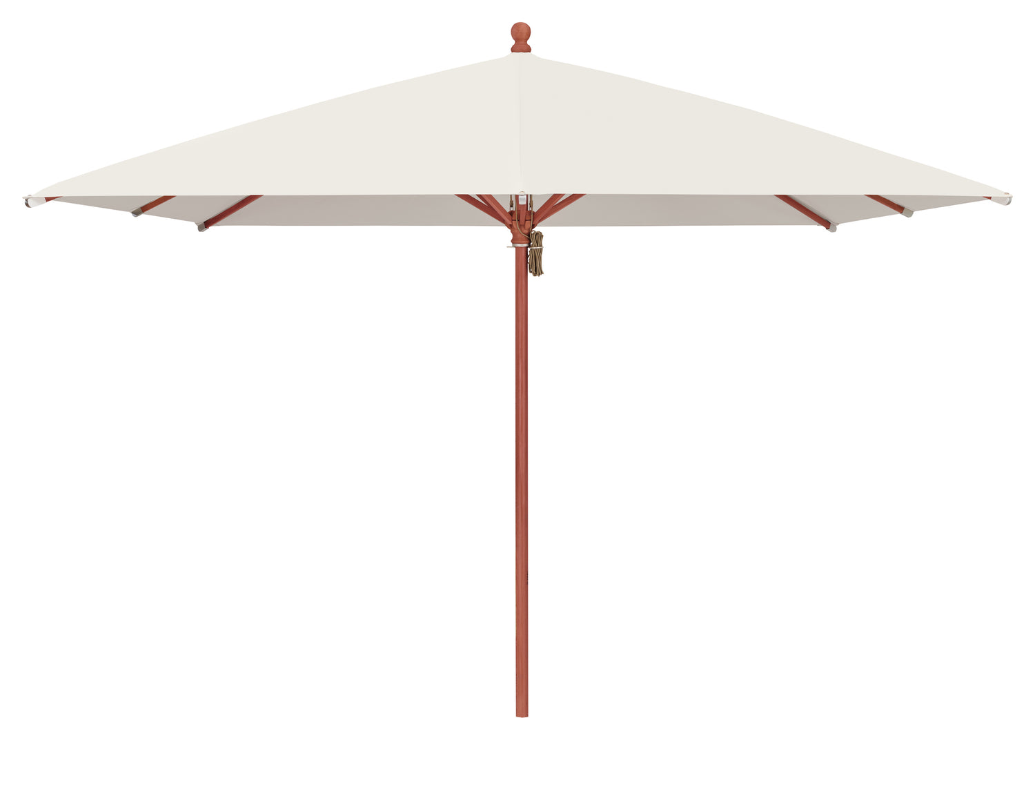 Unser hochwertiger Holzschirm überzeugt aber auch durch sehr einfache Handhabung: Er lässt sich via Flaschenzug schnell und mühelos bedienen. Ehrlich, praktisch, schweizerisch.