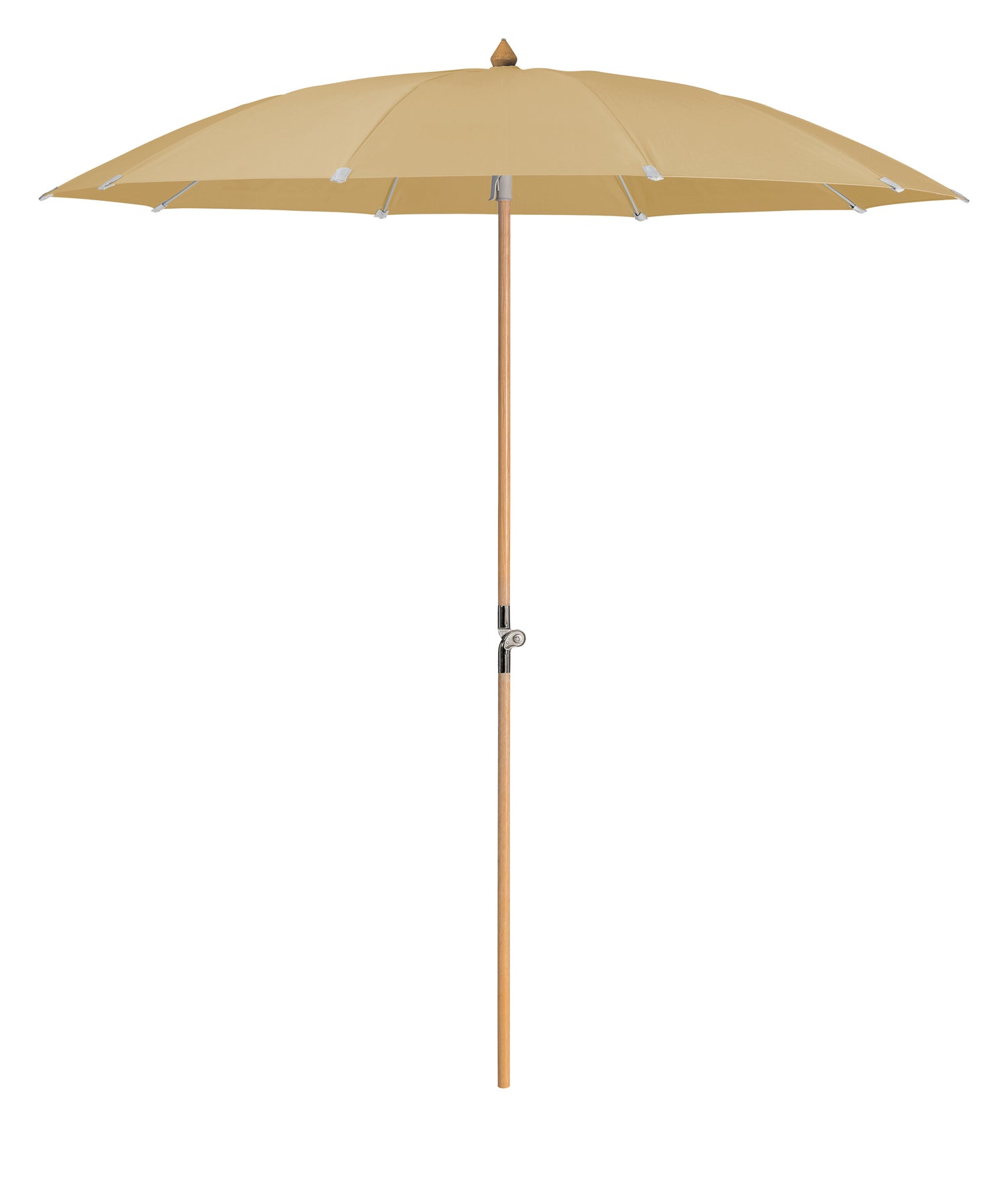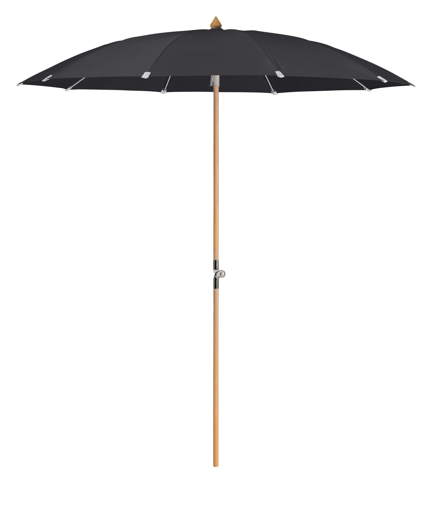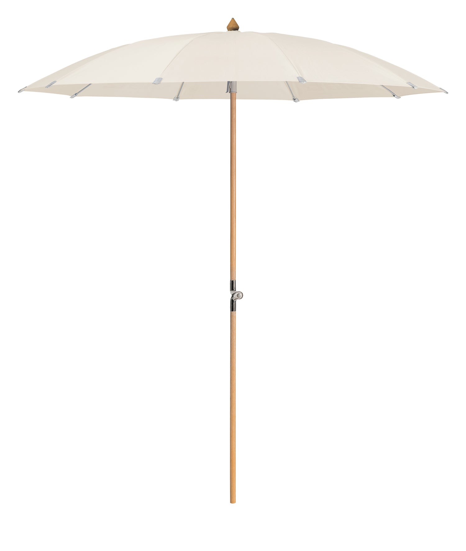 Sein Stock aus Schweizer Eschenholz mit dem Zahnkranzgelenk und das gewölbte Schirmdach machen ihn zum Klassiker unter der Sonne.