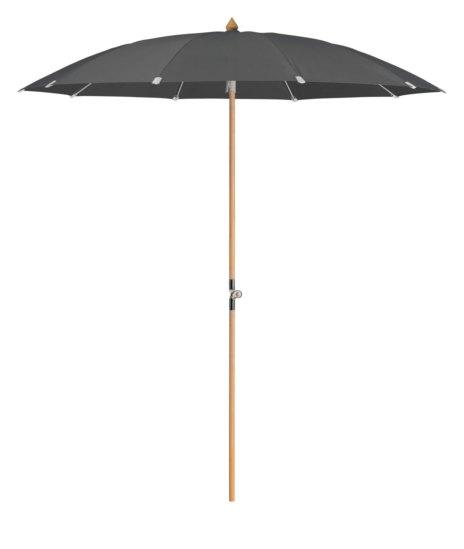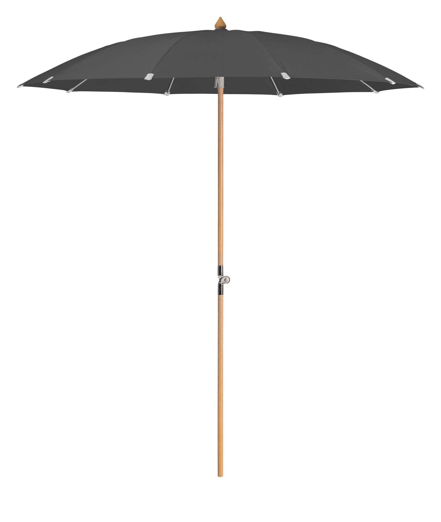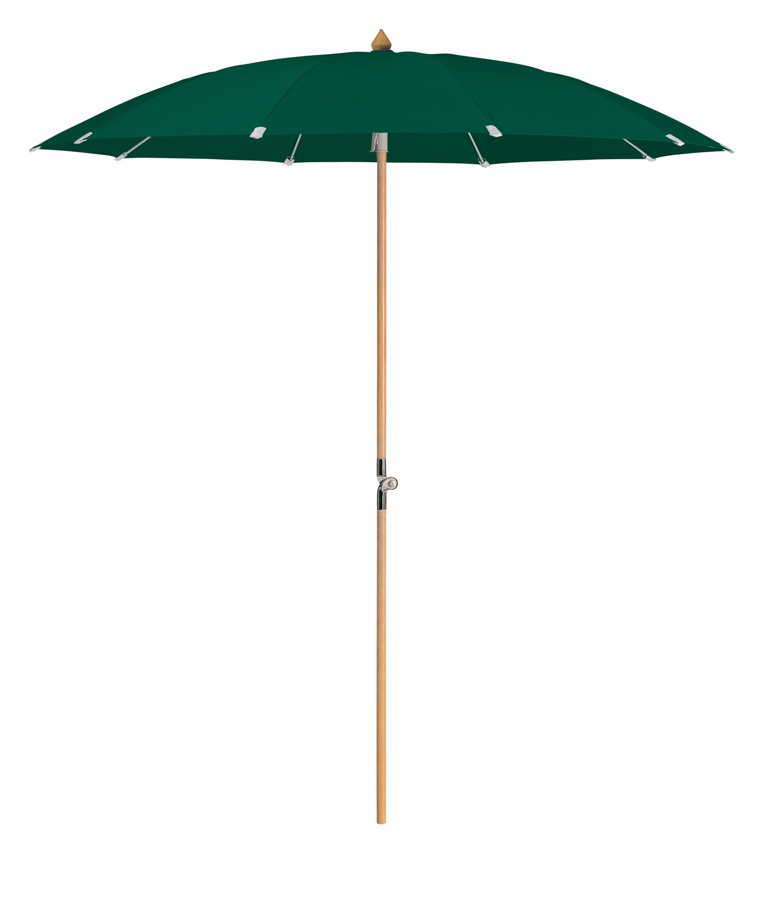 Sein Stock aus Schweizer Eschenholz mit dem Zahnkranzgelenk und das gewölbte Schirmdach machen ihn zum Klassiker unter der Sonne.