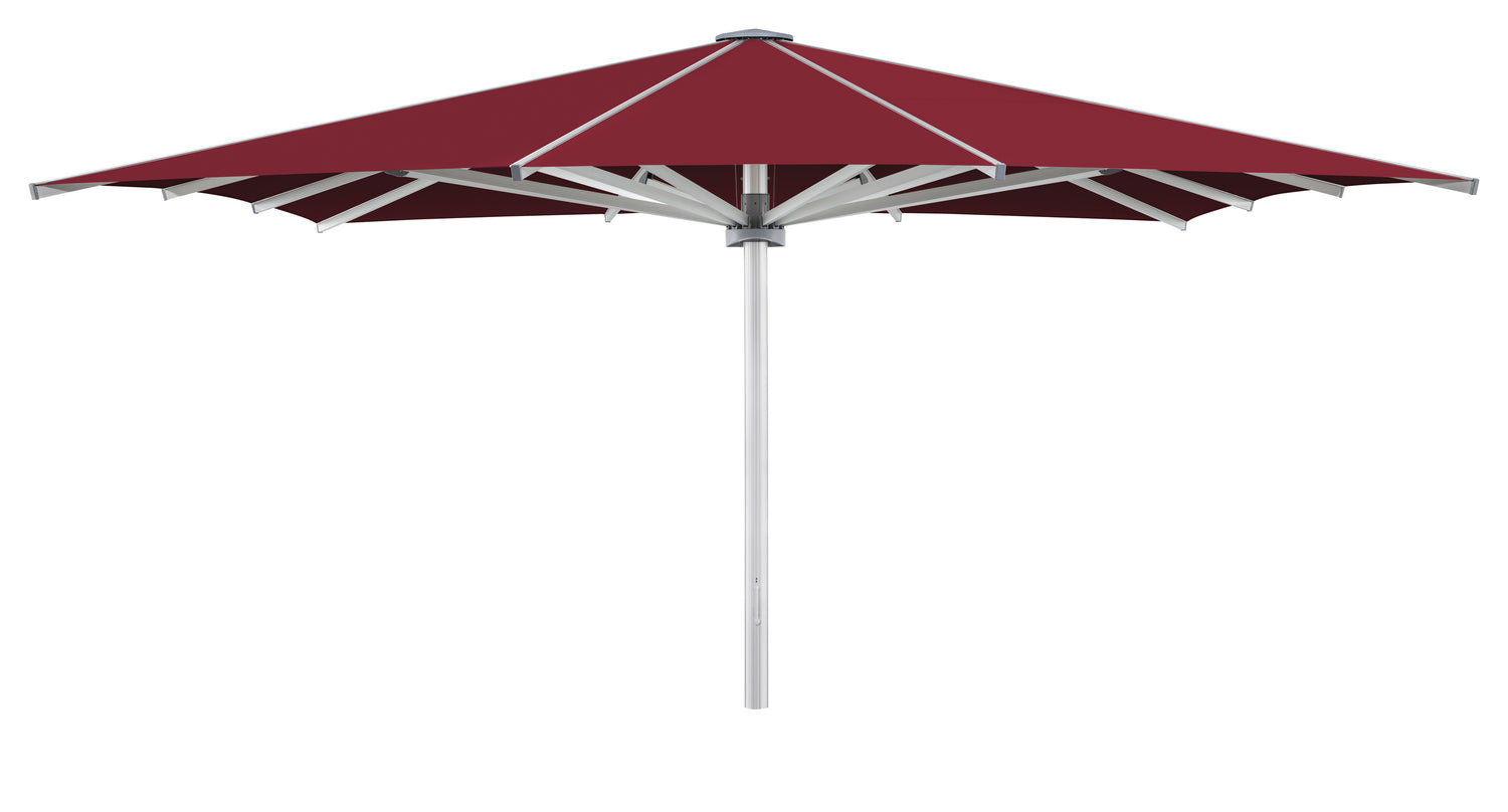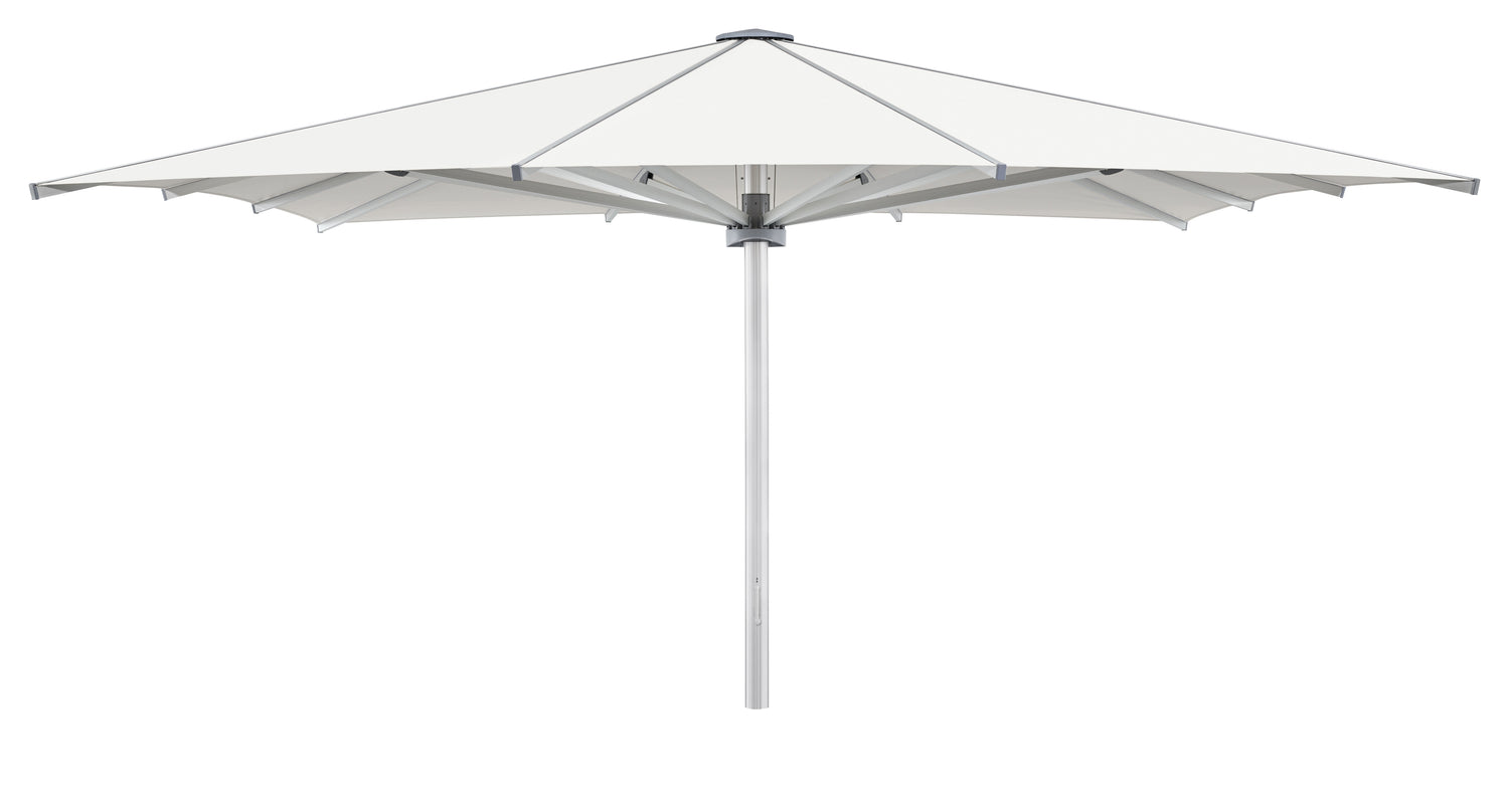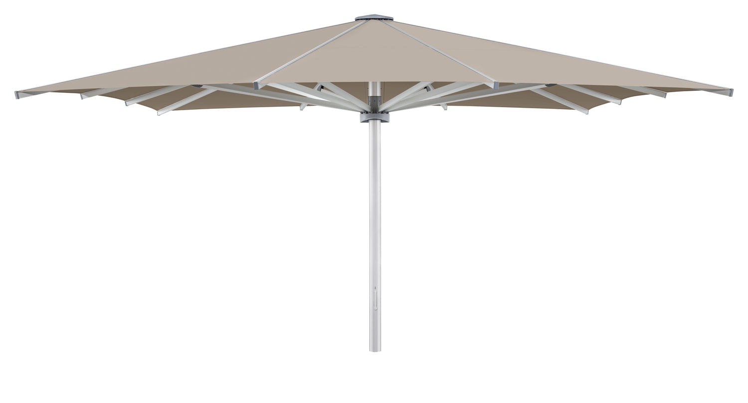 Der PALAZZO Royal kombiniert modernes Design, extreme Stabilität und maximalen Bedienkomfort. Dank des patentierten gegenläufigen Öffnungssystems lässt sich der riesige Gastroschirm trotz seiner Grösse mit nur 14 bis 19 Kurbelumdrehungen oder optional elektrisch öffnen. Ideal für Restaurants, Hotels, Strandbars, Eventflächen und öffentliche Plätze, die einen stilvollen und wetterfesten Sonnenschirm benötigen.