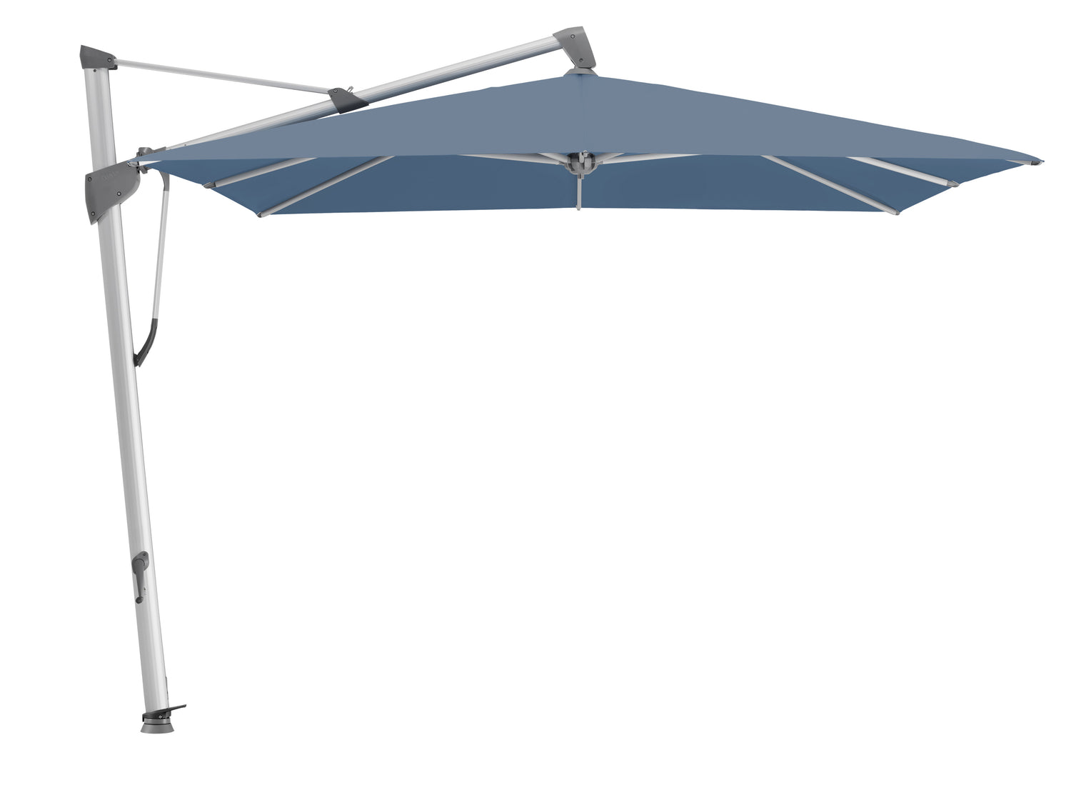 Der seitliche Mast schafft Freiraum und verleiht jedem Außenbereich ein Gefühl von Großzügigkeit und Leichtigkeit. Das hochwertige Schirmdach garantiert 100 % UV-Schutz, lässt sich stufenlos bis 54° auf beide Seiten neigen und dank des kugelgelagerten Drehfußes spielend leicht 360° drehen.