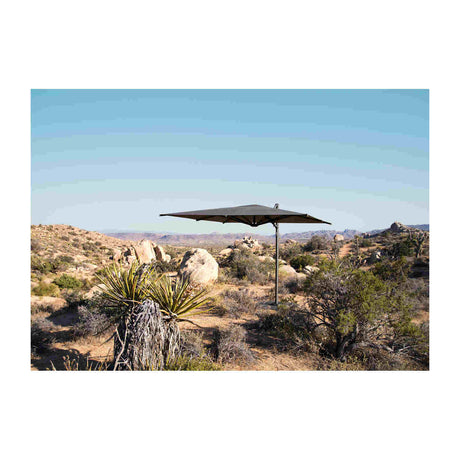 Ampelschirme halten den Mast seitlich versetzt. Die Fläche unter dem Schirm bleibt komplett frei – ideal für Pool, Lounge oder wenn der Tisch nicht mittig stehen soll.