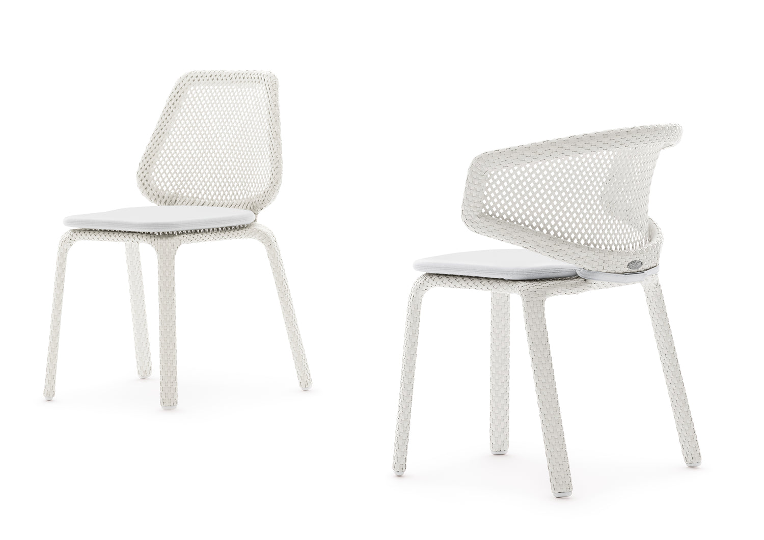 Die Möbel der SEASHELL Kollektion bestehen aus DEDON-Faser, die auf einen pulverbeschichteten Aluminiumrahmen geflochten ist.