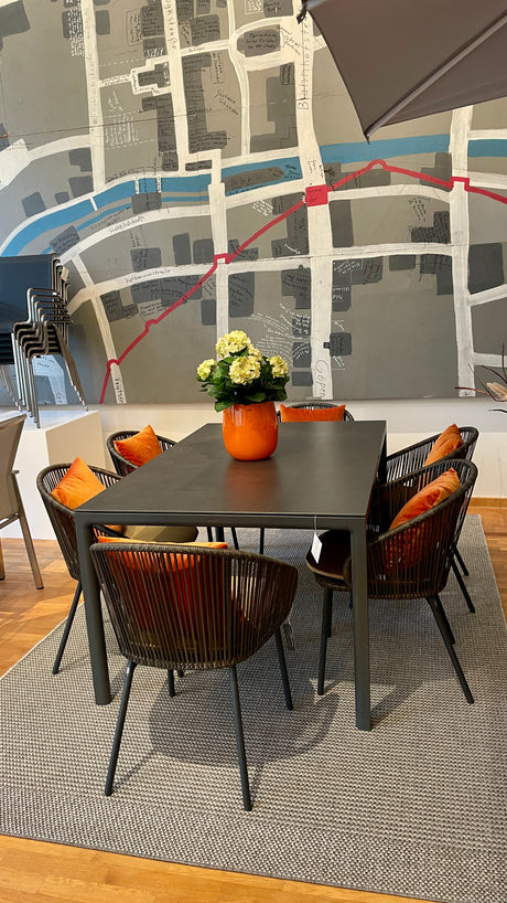Solpuri Tischgruppe - Soft Dining Tisch mit 6 Fischer Basil Sessel